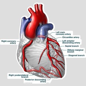 When the internal diameter of the lumen narrows enough to shut off circulation through the coronary arteries, people begin to experience angina, or chest pain. If the arteries are significantly clogged with plaque, the patient may suffer a myocardial infarction (MI), or heart attack. Often times, plaque can burst or break off, causing a blood clot that completely occludes arterial circulation. Depending on the severity of the MI, it can deprive the heart from oxygen-rich blood, causing permanent tissue damage.
