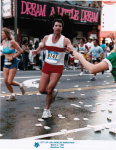 After finishing my bachelor’s degree in 1981, I applied for graduate school. As it turned out, San Diego State was one of the leading universities in exercise science. By some miracle, I passed my GMAT and entered the program, eventually graduating with a master’s degree in exercise science in 1983. Not only was I the first member of my family to earn a college degree, but I was also the first to get a master’s. I went on to run 4 marathons, scores of 10Ks, and any other distance associated with fundraisers of the day. One day at my new job just before the Los Angeles Summer Olympic Games, I got a call from the Athletic Director at the Los Angeles Athletic Club where I worked. “Want to carry the Olympic Torch?” What, was he kidding? “Sure,” I said. “I’ll be right down.” How many people get to carry an Olympic Torch?