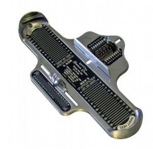 “Just let me double-check that for you,” I said. Reluctantly, she allowed me to place her foot on a Brannock Device—which is the technical term for “one of those foot-measuring doohickies with the sliders and lines on it.” She measured a size 11.