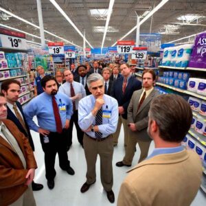 Regional Manager: Attention all Walmart employees! I need immediate assistance from Product and Sales on aisle 11.