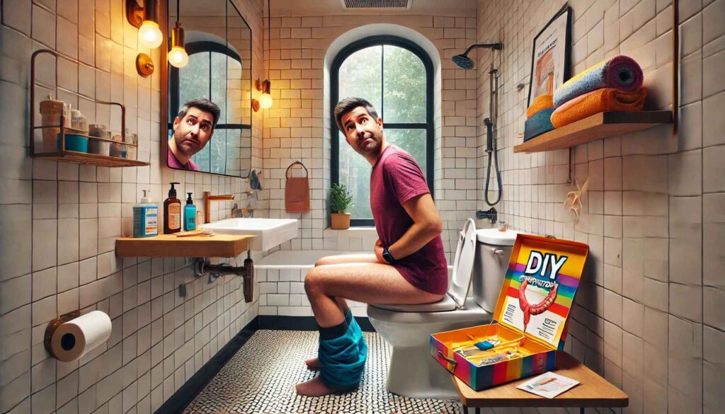 “Hello, America!” It’s your old pal Johnny Henderson, here with a life-changing breakthrough that’s gonna revolutionize your health and your home life! Say goodbye to embarrassing doctor visits, sky-high medical bills, and those cold, impersonal exam tables! Introducing the one, the only, DIY Home Colonoscopy Kit™—because your health shouldn’t come at the cost of your dignity!