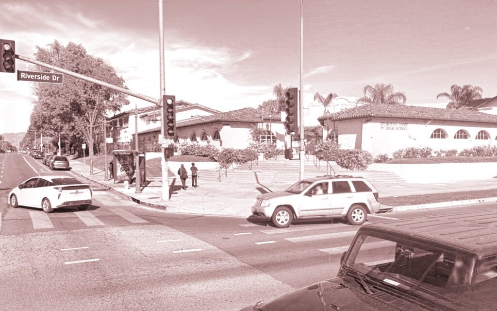 After two years at James Madison Junior High, I switched to Notre Dame High School, which is on Riverside Drive in Sherman Oaks. It was a private Catholic school just for boys. At first it sounded like it might be super boring, but it was actually kind of cool. The place looked like one of those schools from an old black-and-white movie, with brick buildings and a big chapel right in the middle. It was run by these brothers in long, black robes who always seemed really serious, like they were trying to crack the secret code of the universe.