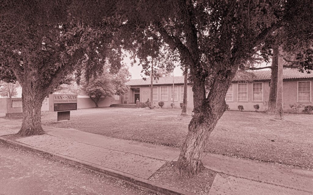 When I was five, I started kindergarten, then the next year, Van Nuys Elementary School. It’s on Sylmar Avenue in Van Nuys, California, and let me tell you, it’s not just a school—it’s, like, a little world all by itself. The buildings are all low, like they’re crouching down, with these huge windows that make you feel like you’re sitting in a fish tank (but without the water, of course). The playground was MASSIVE, like as big as three football fields smooshed together, and it had swings that could launch you so high it felt like you could touch a cloud. Okay, maybe not a cloud, but close.