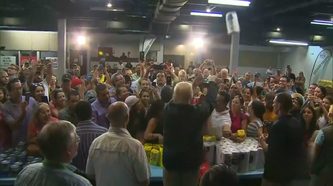 In what can only be described as a “historically unprecedented combination of arm strength and public relations,” footage of President Donald Trump tossing paper towels into a crowd of hurricane survivors in Puerto Rico has once again resurfaced, igniting the same level of confusion, debate, and mild indigestion over his insensitivity with the Los Angeles wildfires as it did back in 2017.