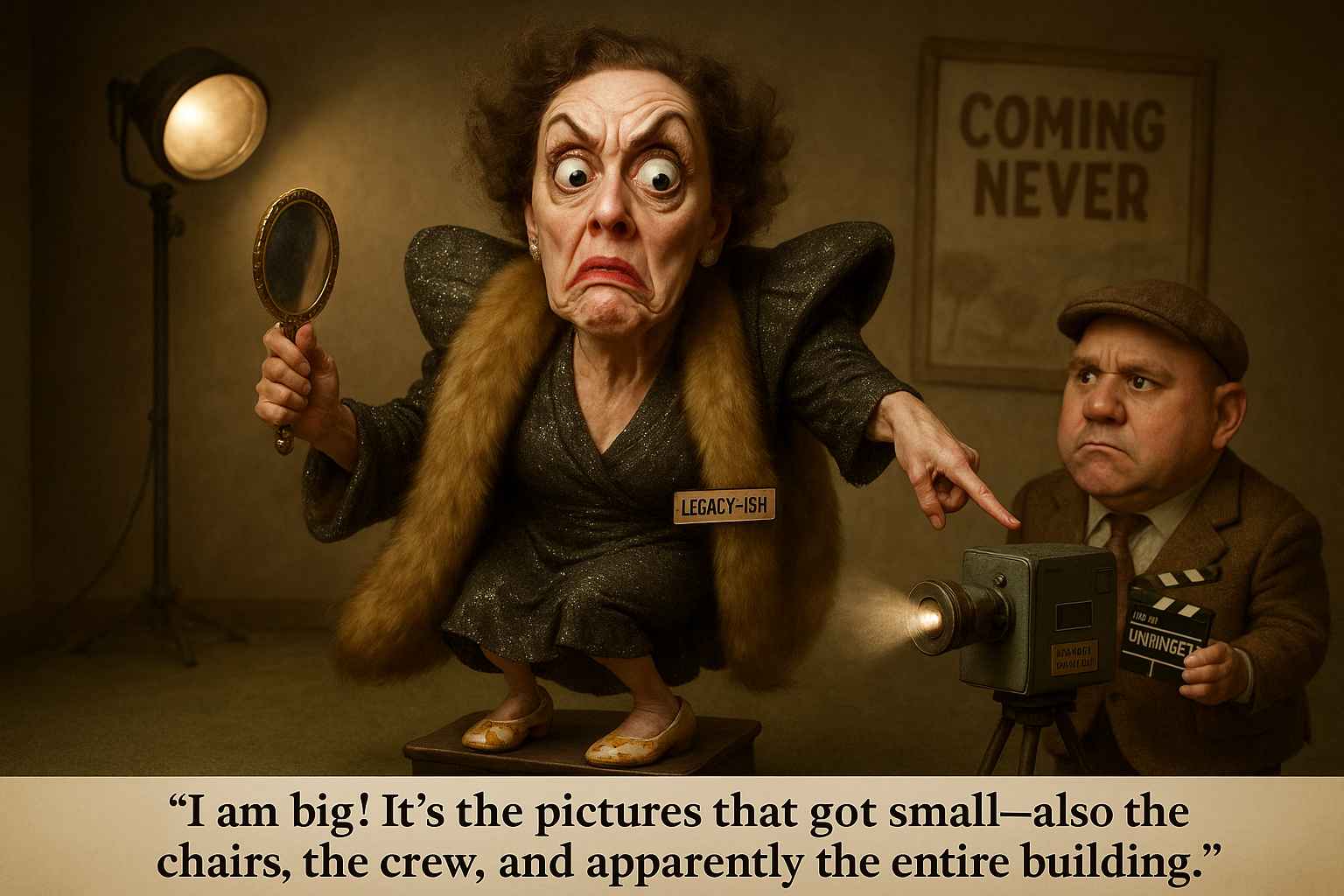 Another Norma Desmond masterpiece, this time defending her ego against the march of irrelevance. It’s defensive grandeur at its finest. You hiss it while being ignored on Slack by interns who think email is “vintage.” The pictures didn’t get small. You just got muted.