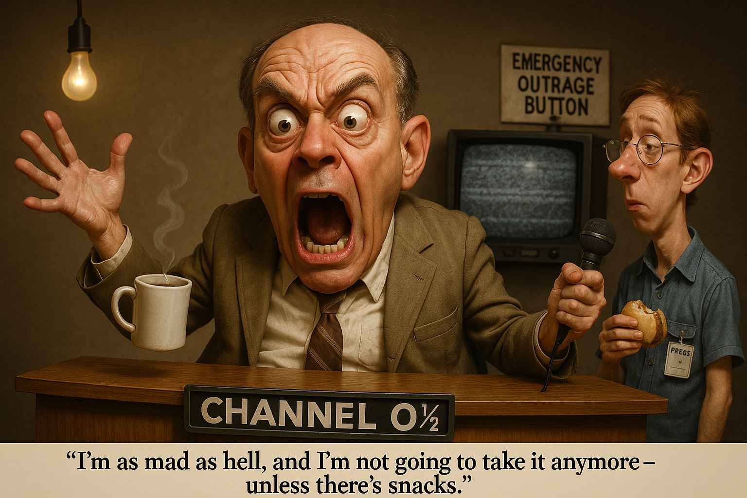 A news anchor melts down on live TV and accidentally becomes a prophet of rage and ratings. The line isn’t just shouted—it’s exorcised. You scream it at the DoorDash driver when your burrito order gets messed up for the 100th time. Where is your justice?