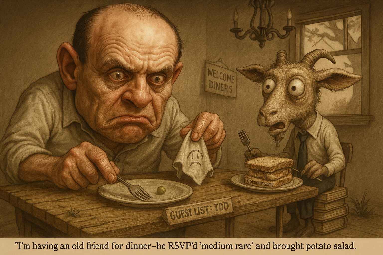 Hannibal Lecter’s sign-off before tracking and likely devouring someone. Equal parts chilling and refined. You quote it to your dog while microwaving week-old lasagna. The real horror is what’s growing in the corner of the Tupperware.