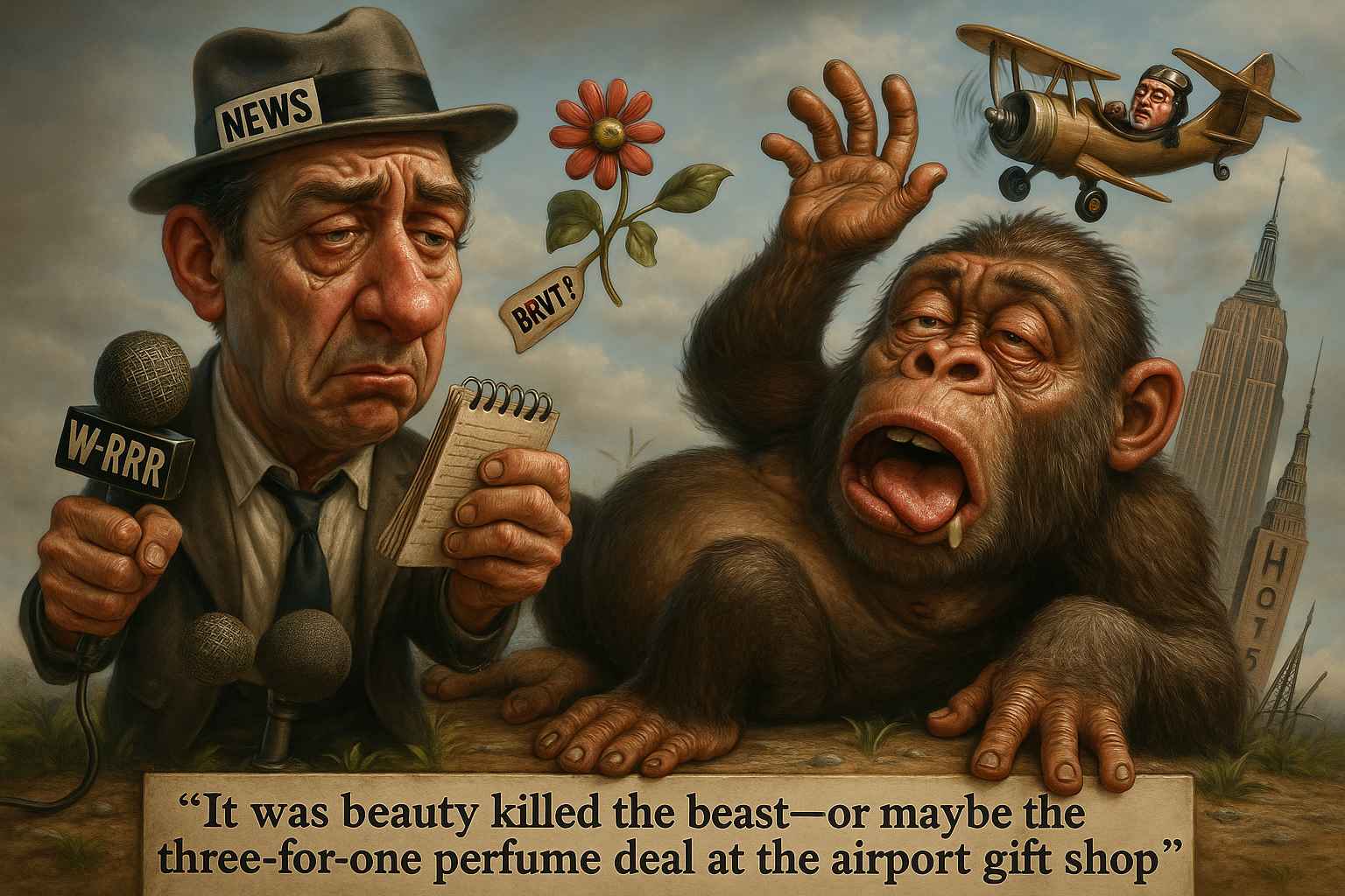 A poetic epilogue to destruction, suggesting that love and awe undid the monster more than bullets ever could. You say it dramatically as you throw away a houseplant you forgot to water for three months. Its name was Fern Diesel, and he died as King Kong lived: dry and misunderstood.