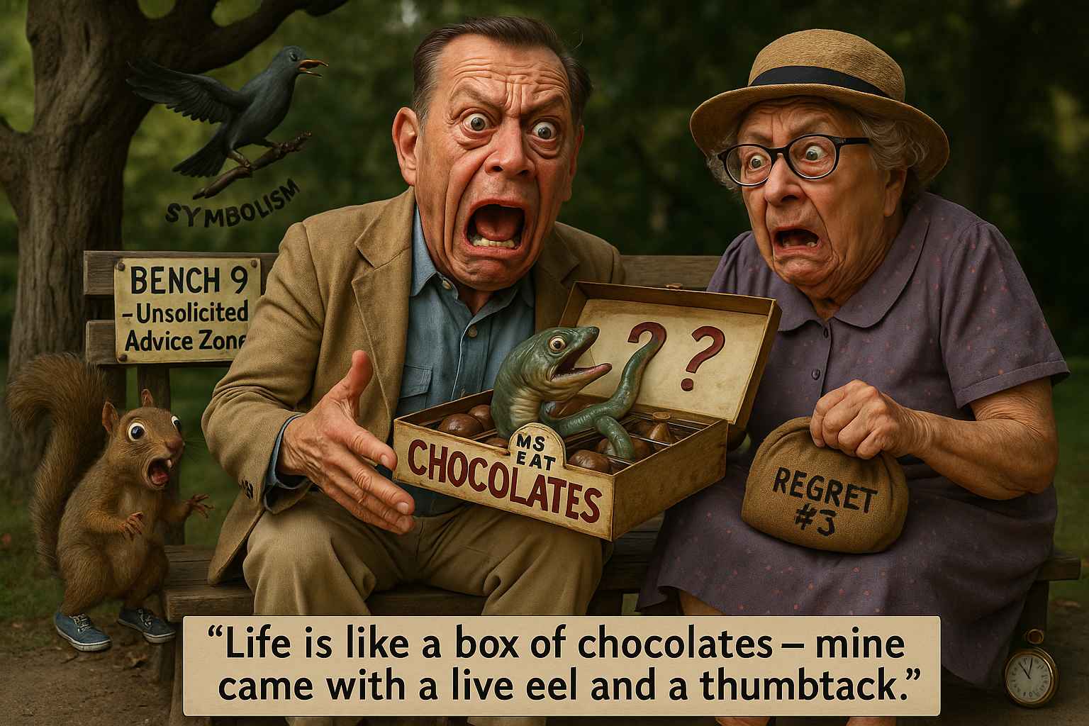 Played by Tom Hanks, Forrest Gump offers a nugget of simple wisdom wrapped in complex trauma, abuse, war, love, and shrimp-based capitalism. You mutter it while pulling a mystery condiment packet from your glove box and applying it to your sad drive-thru burrito. Spoiler: it was Gorilla Glue.