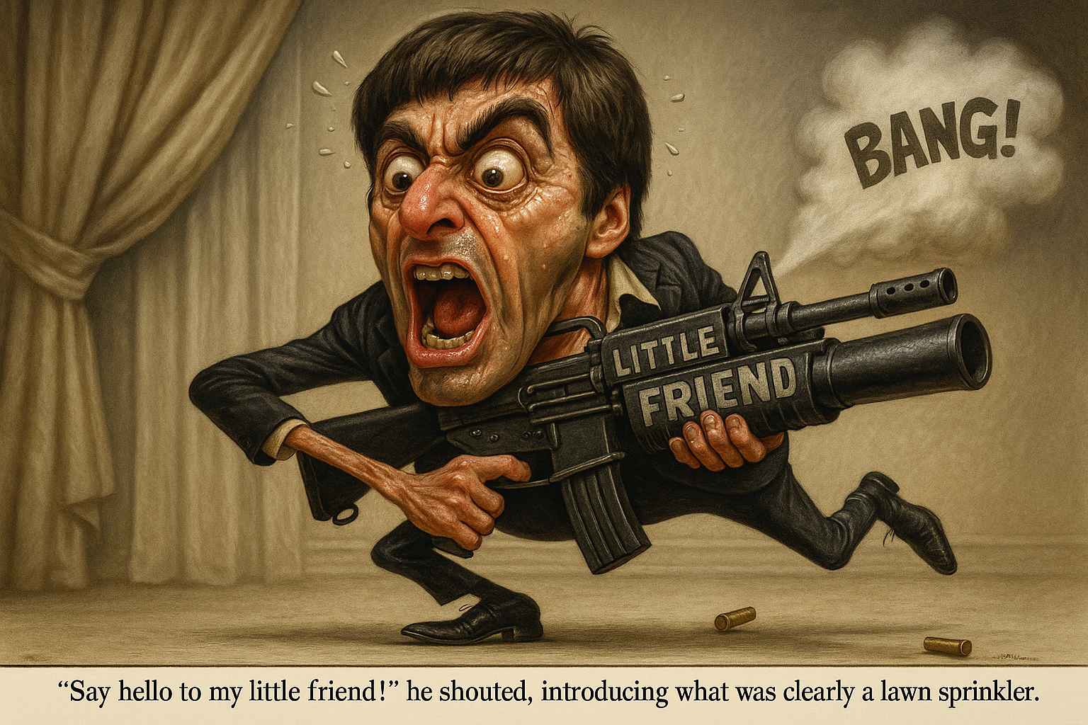 Al Pacino as Tony Montana snarls this iconic greeting as he unleashes a grenade launcher, turning his mansion into a smoky, bullet-riddled monument to excess and paranoia. You shout it boldly while wielding your brand-new electric weed trimmer like a medieval knight storming the dandelion fortress in your backyard. Like Tony, you dream big, but weeds, like drug empires, have a way of fighting back.