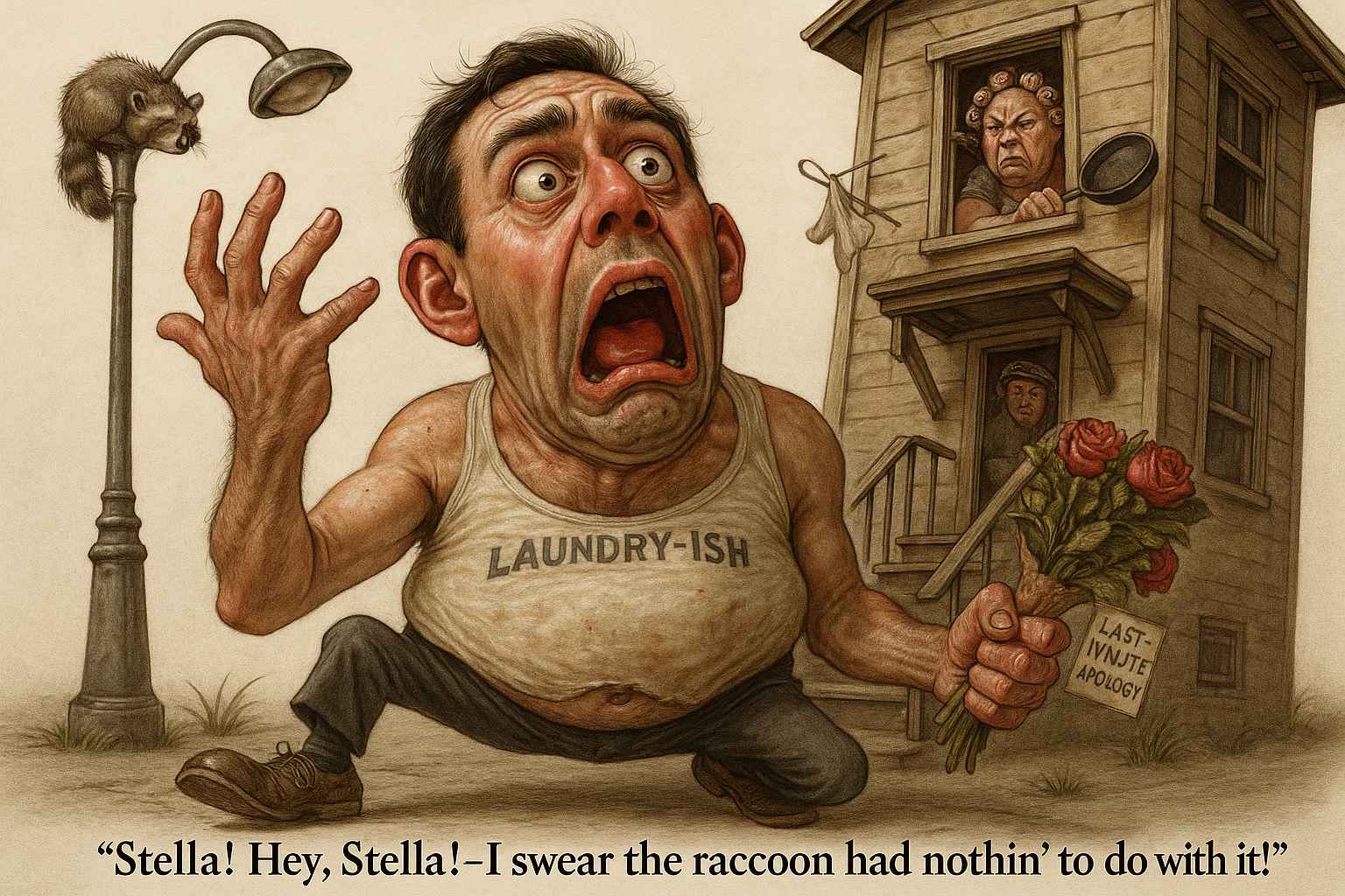 Stanley’s primal scream through a courtyard is sweaty, sexy, and deeply problematic. You shout it at your neighbor’s pet mammal after it bolts into your yard and steals your sandwich. Again.
