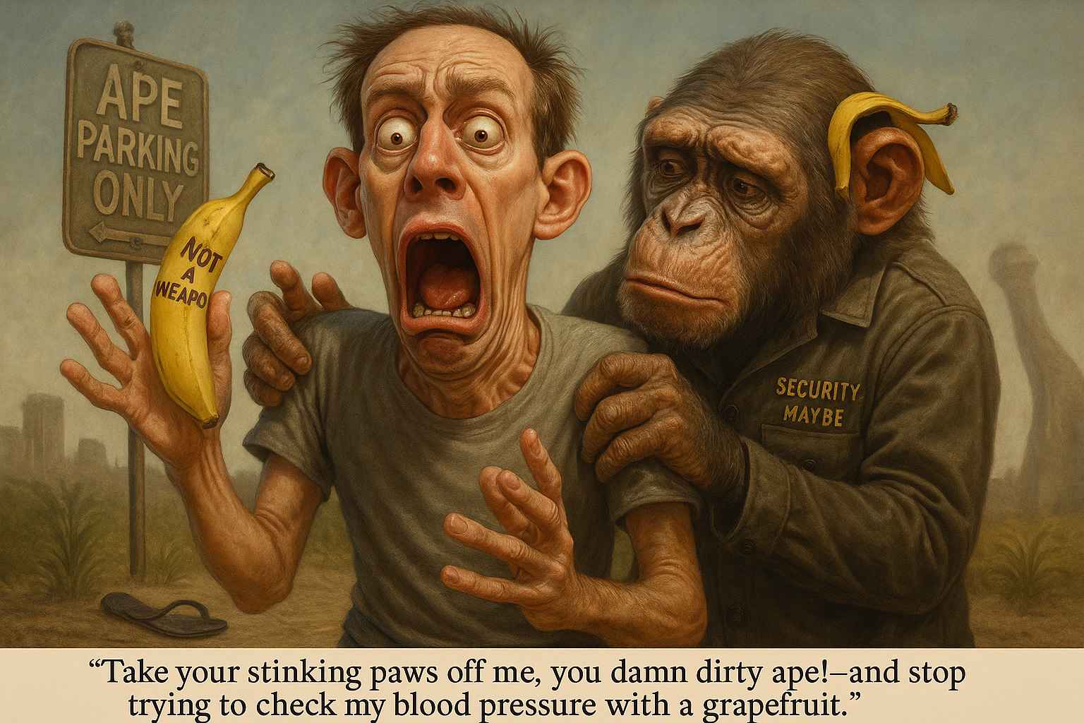 Charlton Heston delivers this line in disgust and righteous fury after being manhandled by a gorilla in security gear. It’s a sci-fi mic drop. You snarl it at your dentist as he injects your diseased gums with Novocain.