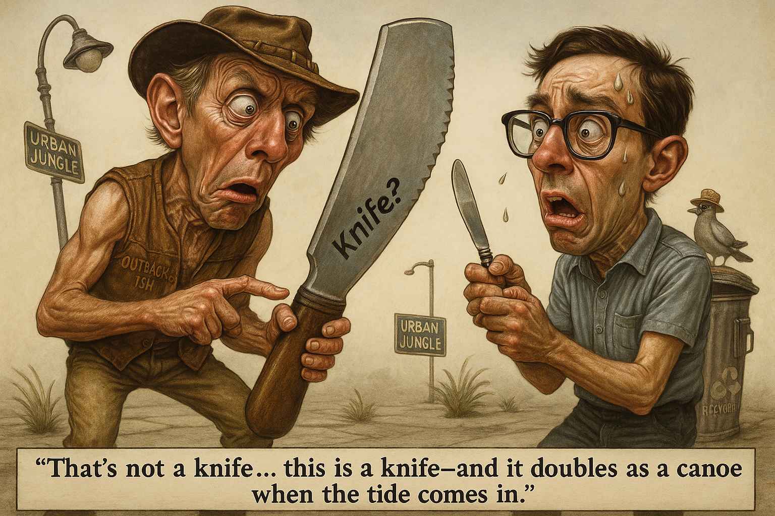 “That’s not a knife… this is a knife.” – Crocodile Dundee (1986)