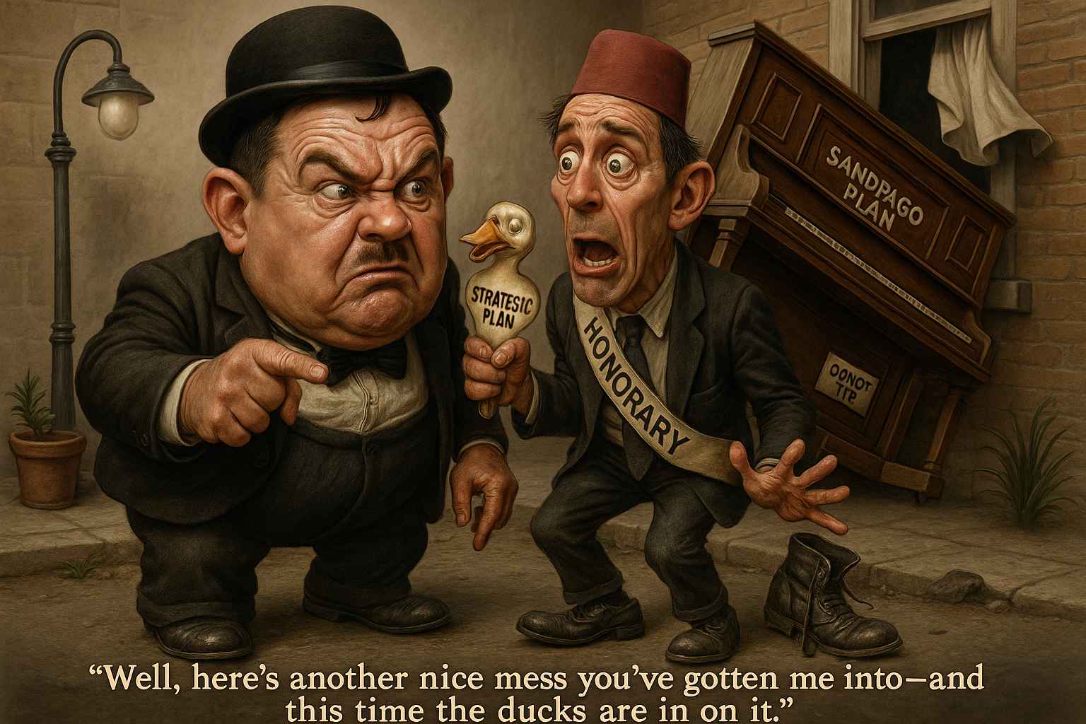 Laurel and Hardy perfected the comedy of escalation and absurdity. And this line encapsulates the spiraling chaos of their situations. You mutter it while knee-deep in IKEA debris, surrounded by cryptic instructions and three leftover screws that taunt you with their smug metallic silence.