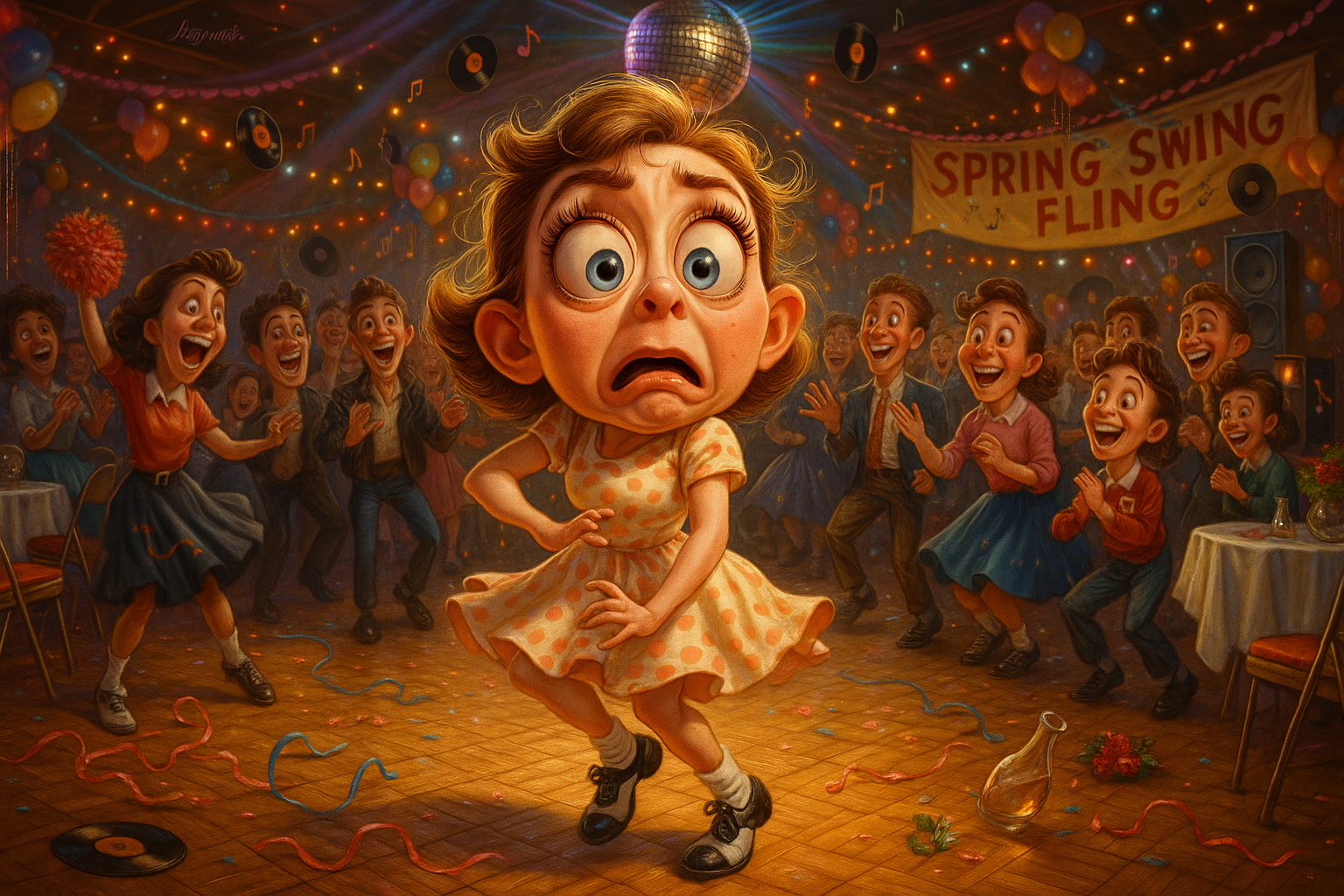 At a school dance, a shy girl wins the “twist contest” with an impromptu, wobbly routine that gets the whole gym clapping.