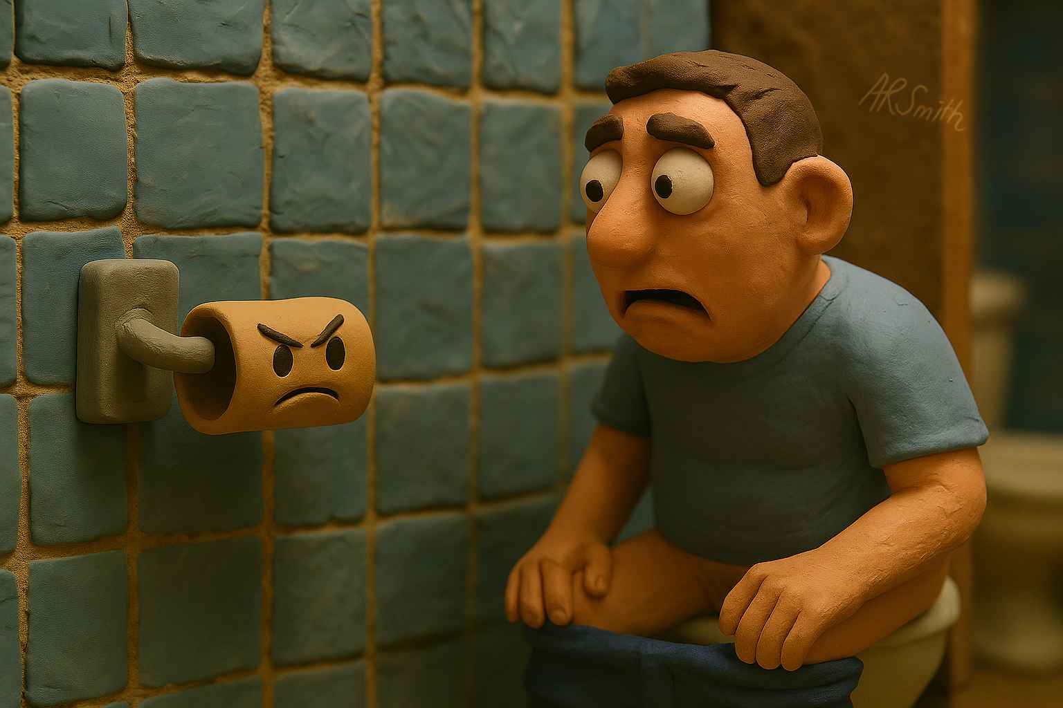 After settling into a public restroom stall, you notice the empty, cardboard tube glaring back at you.