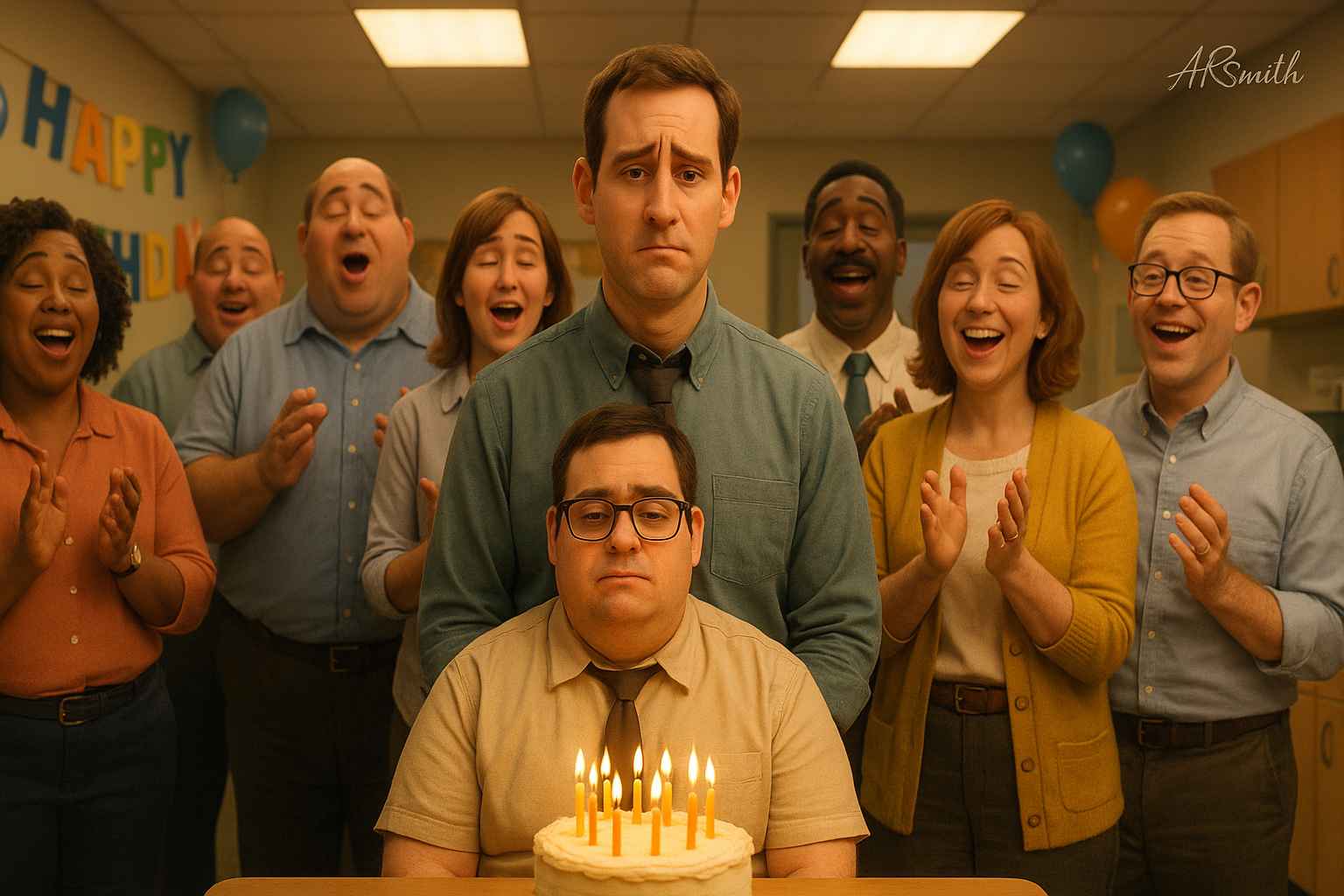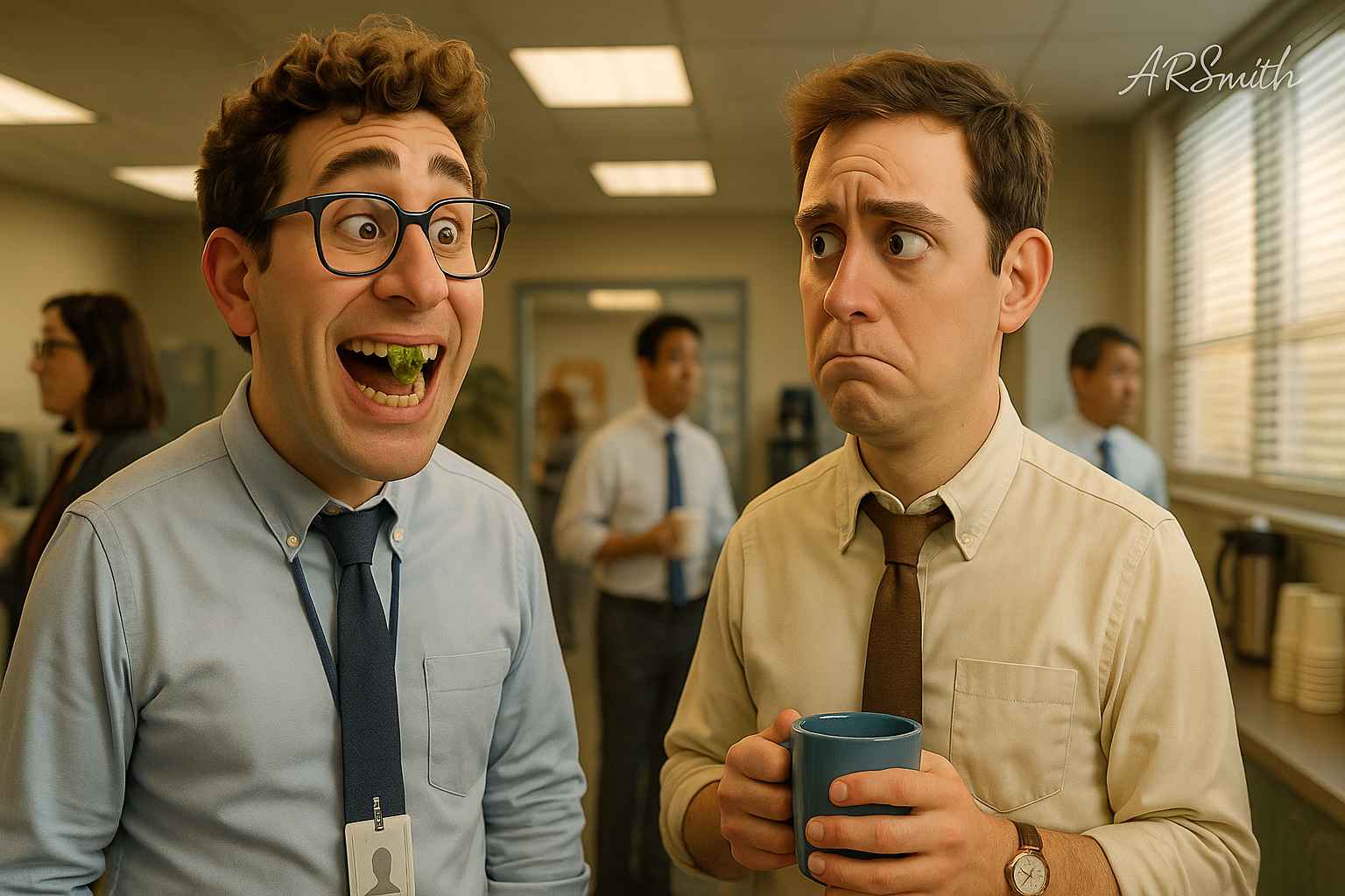 “Rough night?” asked Jen from HR, eyebrows raised to OSHA-approved concern levels.