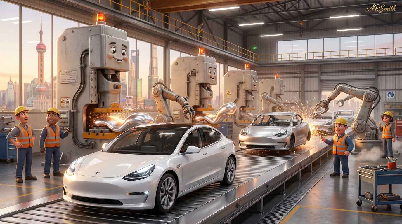 Even before I had time to finish buttering my bagel, somewhere in Shanghai, a brand-new Tesla Model 3 had rolled off the line. And, not just one, either. New cars pour out of their factories like overcaffeinated PEZ dispensers. At full tilt, they spit out a completed car every 60 seconds. Think about that. Most of us can’t even find our keys in that amount of time. Meanwhile, globs of raw aluminum slide into one end of the plant, get smacked around by a battalion of stamping presses, and emerge an hour later, a showroom-ready family car.