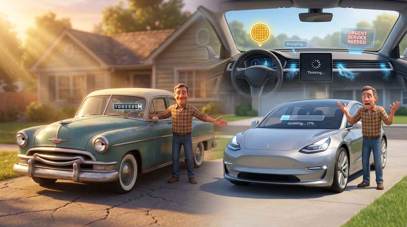 There was a time we bought a single item, used it with care, misplaced it for a decade, found it wedged behind the refrigerator, and marveled that it still worked. Now we’re urged to buy everything in multipacks, not only because they’re cheap but because each piece seems to possess the lifespan of a startled mayfly. If progress means your hairbrush arrives as a six-pack because five won’t survive the week, maybe it’s time to warm up the fondue pot, slip into your finest polyester, and revisit an age when “made to last” meant exactly that. The, contrast with the way things are, beginning with your car.
