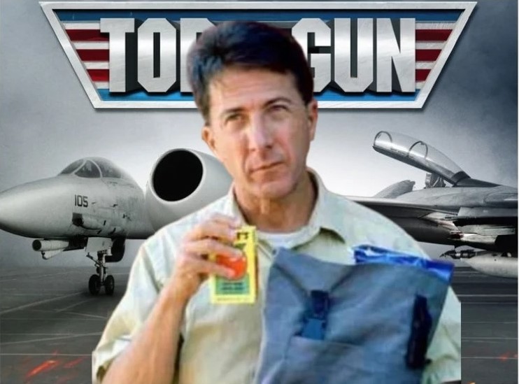 Fade in Exterior Naval Air Station – Tarmac – High Noon Sun pounding. Jet engines roar. Pilots stride with purpose and determination. Tension crackles in the humid air. Commander “Viper” Metcalf glares at Raymond “Juicebox” Babbitt (Dustin Hoffman), who stands stiff, clutching a laminated flight schedule. Lt. Pete “Maverick” Mitchell smirks nearby, sunglasses glinting. Viper (growling) You’re telling me you’re…