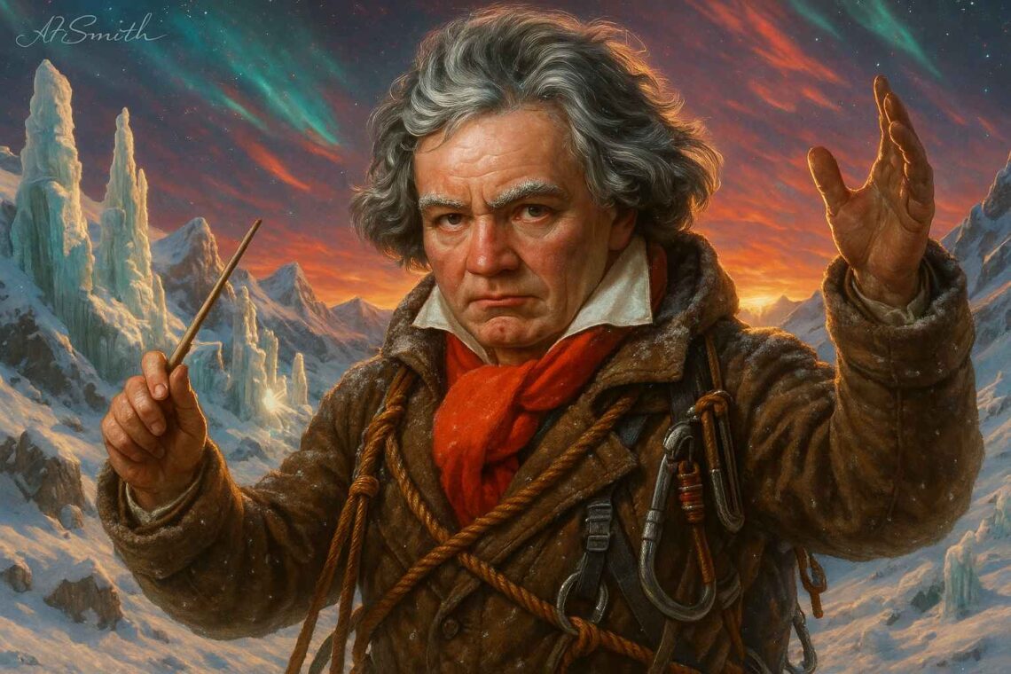 Avalanche thunder rolled like timpani drums, the wind shrieked like dissonant strings, and the death zone swallowed sound into silence. Yet Ludwig van Beethoven—completely deaf, yet orchestrating destiny—etched his name atop Everest’s icy staff lines at 29,032 feet. Beethoven arrived at base camp as an over-40, mentally unprepared, first-time climber who fought through bouts of motion sickness that rattled his…